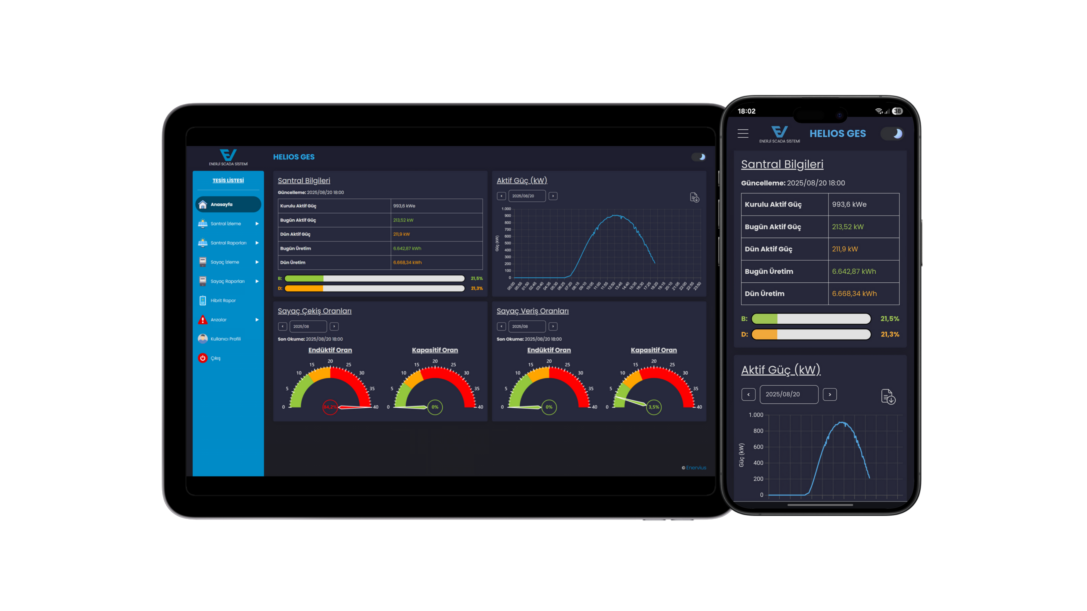 Enervius, bilgisayar, tablet ve telefonlarda sorunsuz şekilde çalışır. Mobil cihazlara uygulama olarak kolayca yüklenir ve sisteme her yerden tek dokunuşla erişim sağlar. iOS ve Android desteğiyle kesintisiz bir mobil deneyim sunar.